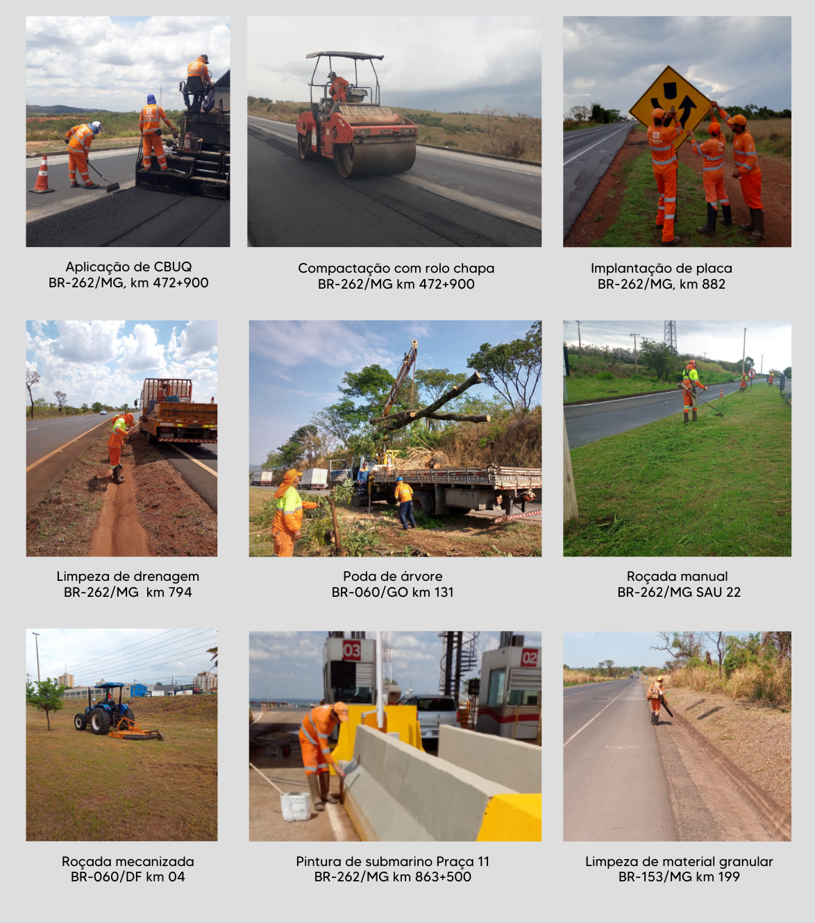 A Triunfo Concebra realiza diversos serviços de conservação ao longo do trecho de concessão, como: manutenção no pavimento e na sinalização horizontal, roçada, limpeza de placas, limpeza de meio-fio, troca de defensa metálica, dentre outros diversos trabalhos.